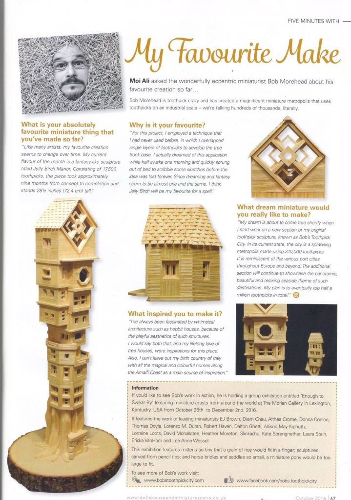 “Bob Morehead makes models out of toothpicks, but he’s taken his hobby to the next level…Bob has incredible talent and attention to detail. All his models are so painstakingly and lovingly crafted that you almost want to climb in and go live in them” — Awesome Inventions