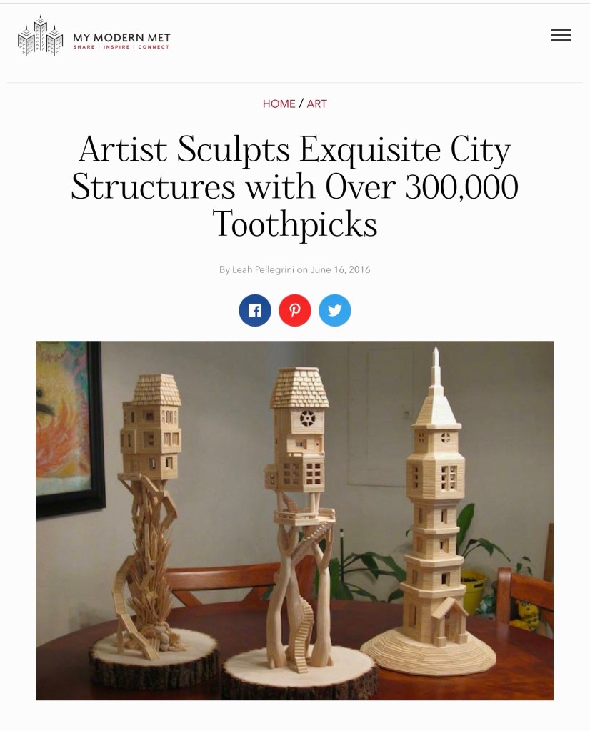 “Bob Morehead has crafted an intricate and labyrinthian cityscape using nothing more than wood glue and basic toothpicks,..with every skillfully sculpted detail more staggering than the last” — My Modern Met.com